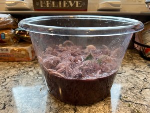 I really enjoy making slow cooked dishes and this one is a three-day process. Several my food blogs will be about slow cooking, smoking, and sous vide recipes. Marinating the two primary ingredients in wine for at least 24 hours in wine is the start.