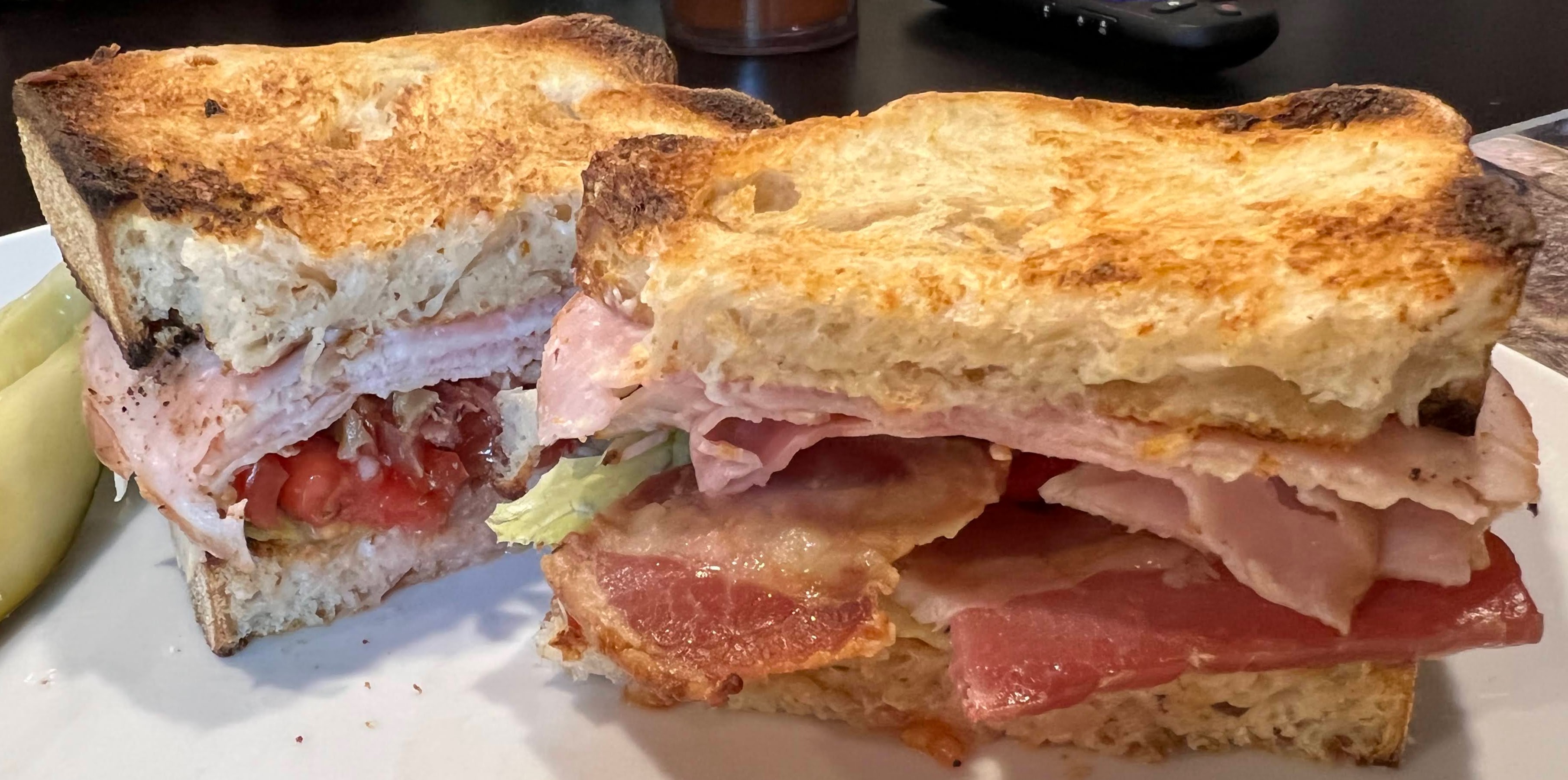 For lunch Beth made delicious club sandwiches on sourdough bread with our bacon. We are not planning on any bacon with dinner tonight!
