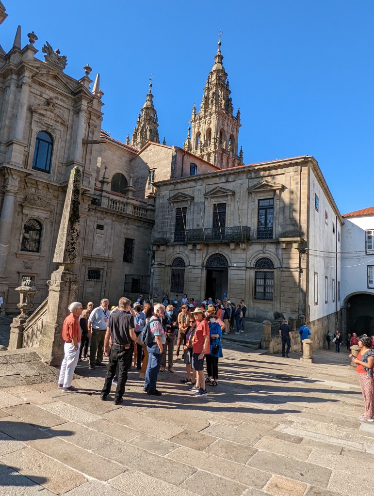 Monday Sept 19 was our first full day as part of Howard’s group of 21 people plus Antonio our guide, Ramon our driver, and Howard. We stayed in the NH Collection Santiago de Compostela Hotel only one night, the only part of Howard’s trip where we were not in a hotel at least two nights and two times for three nights which significantly reduced the unpacking and packing. Antonio’s routine at the end of each day was the same, with some changes to the specific times based on our schedule. Only one morning was fairly early, the most common was “Wake Up call at 8:00, Breakfast is served starting at 7:00, Bags outside your room at 8:45, be in the Bus at 9:30.” We did not have to get our bags down to the bus any time and when we arrived at each hotel our bags were brought to our room. All the gratuities for that were included in the package price that we had paid Howard.
