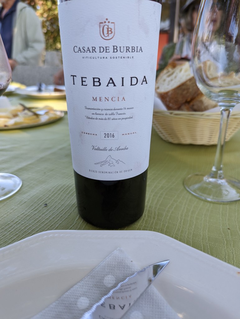 We then went back to the bus and went to the winery where were taken through their wine making process and then enjoyed six of their wines including the three Mencías recommended below. The first one is their basic Mencía, the Hombros is the next step up, and the Tebaida Mencía is another level up wine where they trimmed the vines to further limit the yield of the harvest. We loved all three and have gotten the Mencia and the Tebaida locally, but all the stores are now out of stock. I suspect they are waiting for the 2021 vintage to ship. I am enjoying the other wines in the list below while I wait for the Cesar de Burbia get back on the shelf.