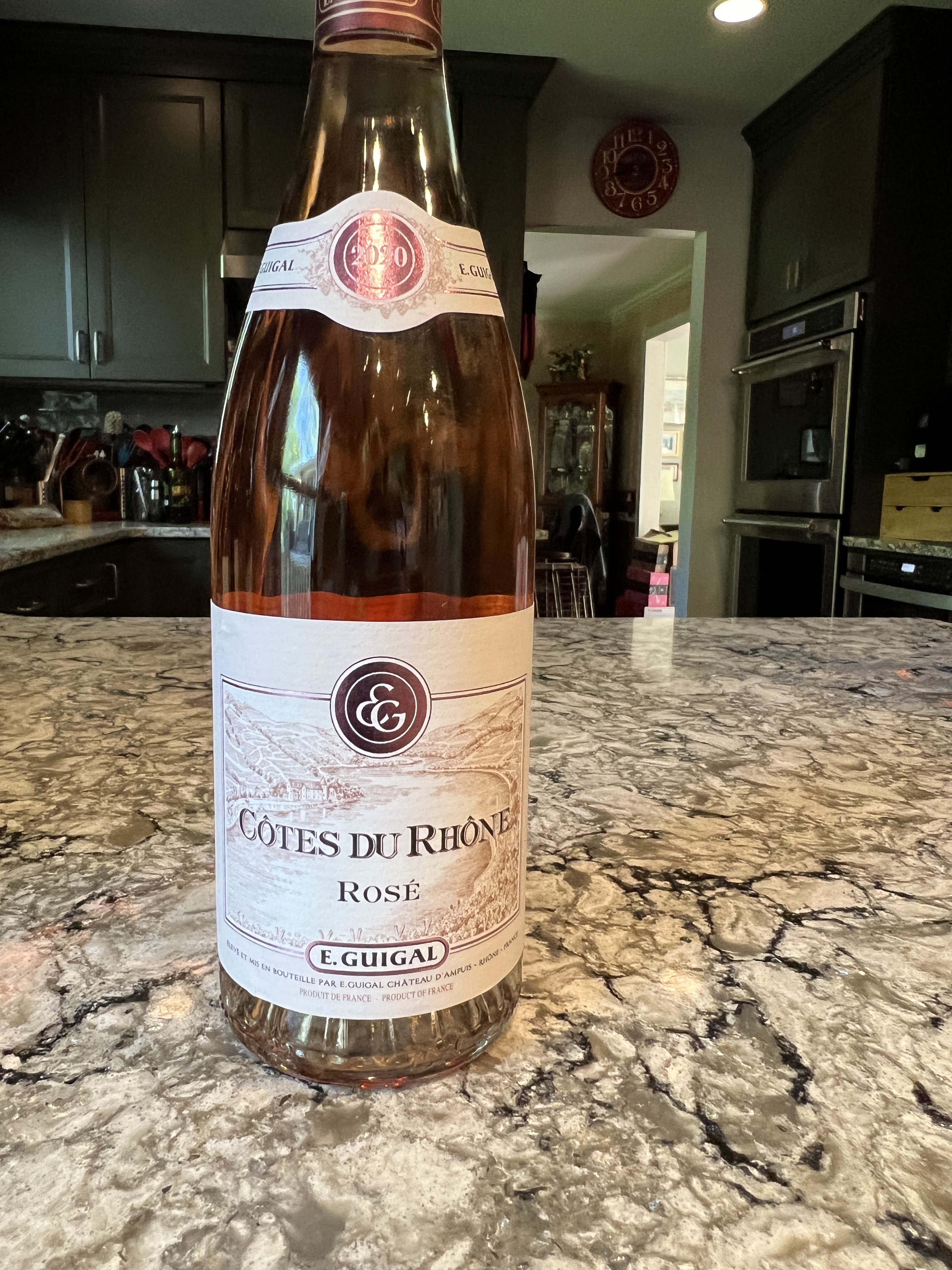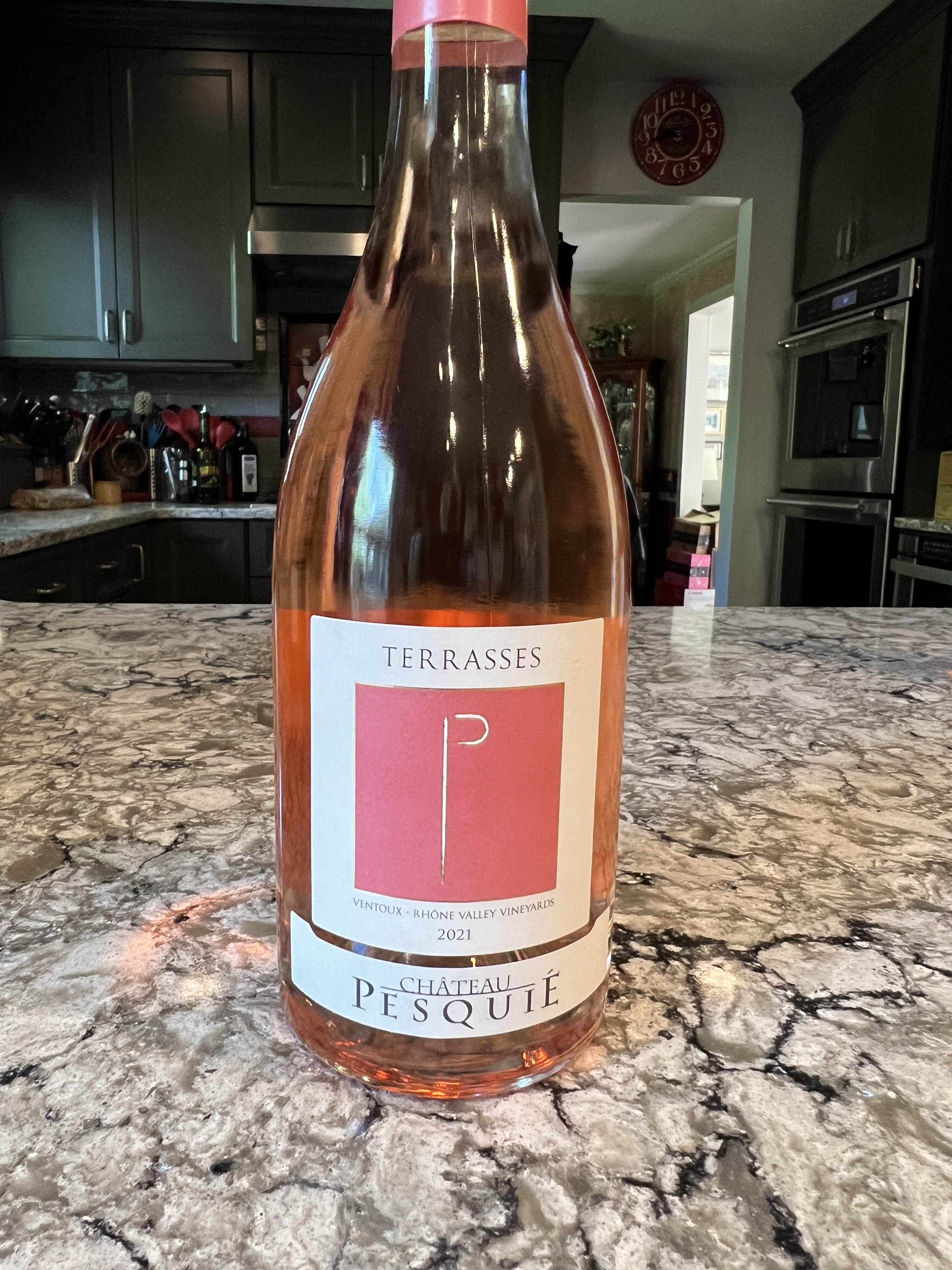 Chateau Pesquie Terrasses Rose – The designation “Cote du Rhone” means that all of the grapes in that wine were grown in the specific geographic region that is defined as Cote du Rhone.  Within that large region smaller geographic areas have been defined as higher quality than just Cote du Rhone.  The most famous of these is Chateauneuf-du-Pape and some of the 301 vineyards in that AOC do make Rose.  But not at a price that I am willing to pay.  The Taval AOC mentioned above is another one where they focus more on sweeter Roses.   Chateau Pesquie is in the Ventoux AOC and the Chateau Pesquie red wine is one of my favorites for under $20.   Their Rose is also one of the standard wines we keep in my cellar.  It is not as widely carried as the Guigal Rose but many Total Wine stores carry it and Wine.com usually has it in stock.  $18-20.