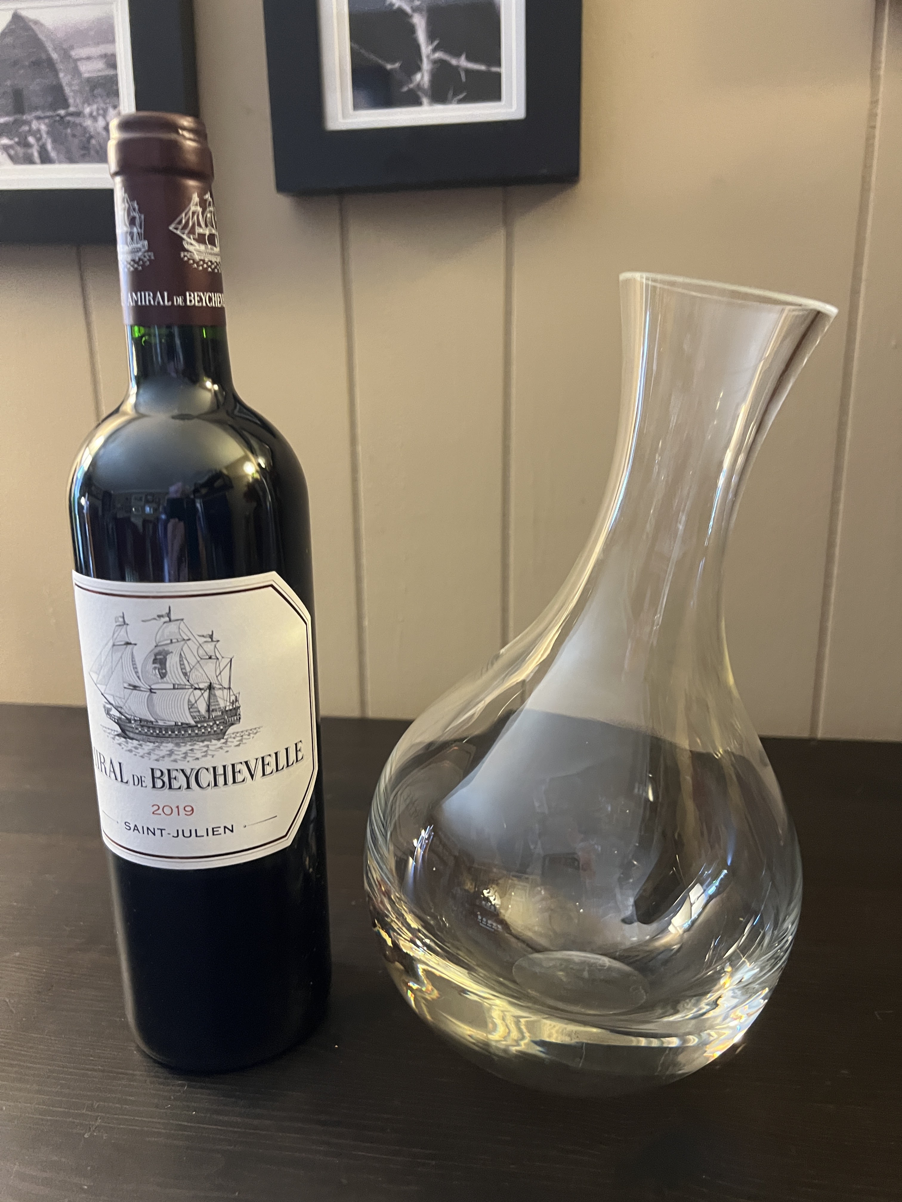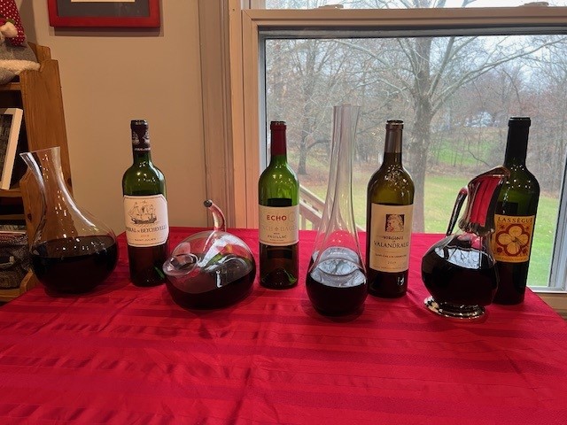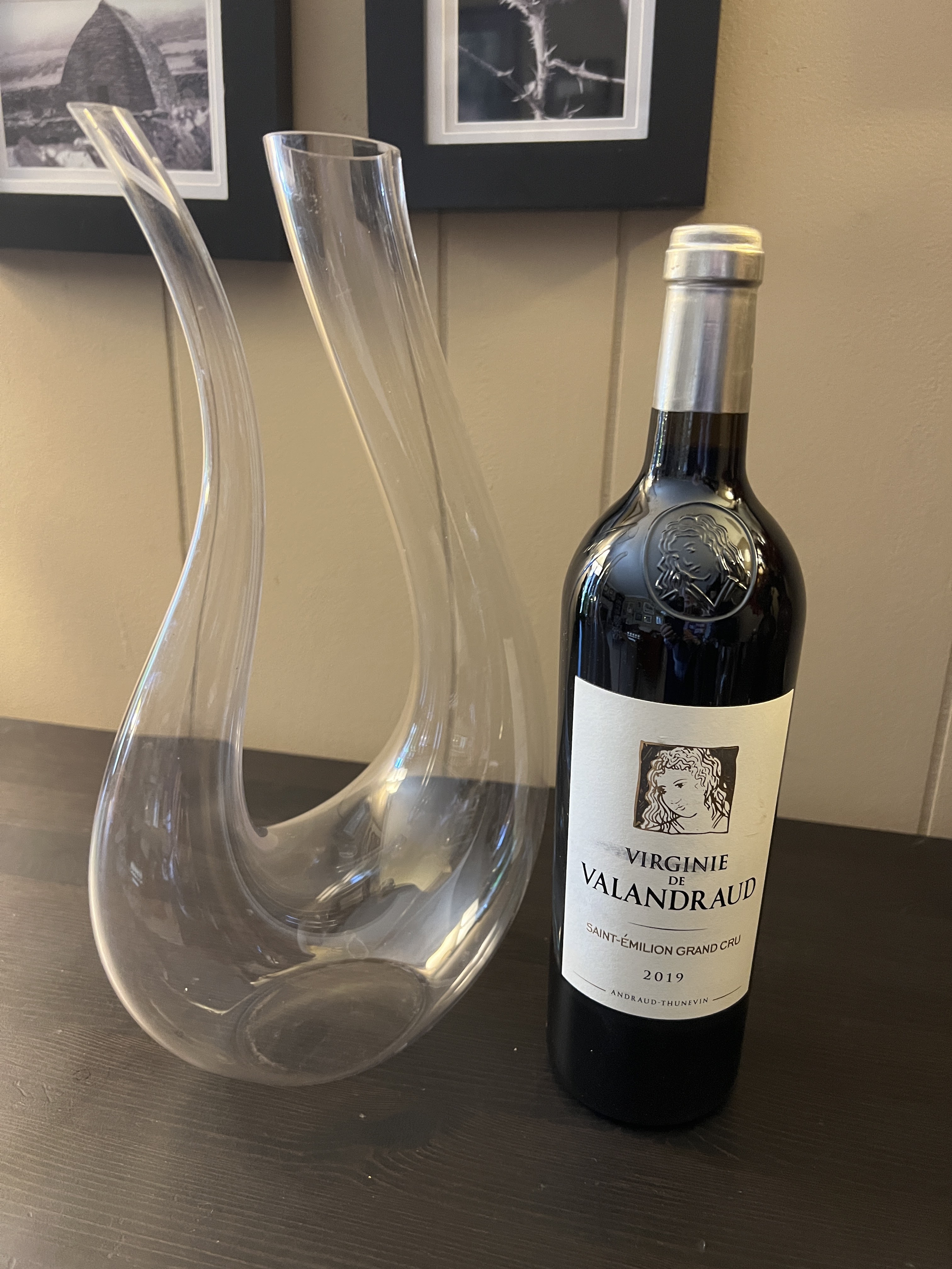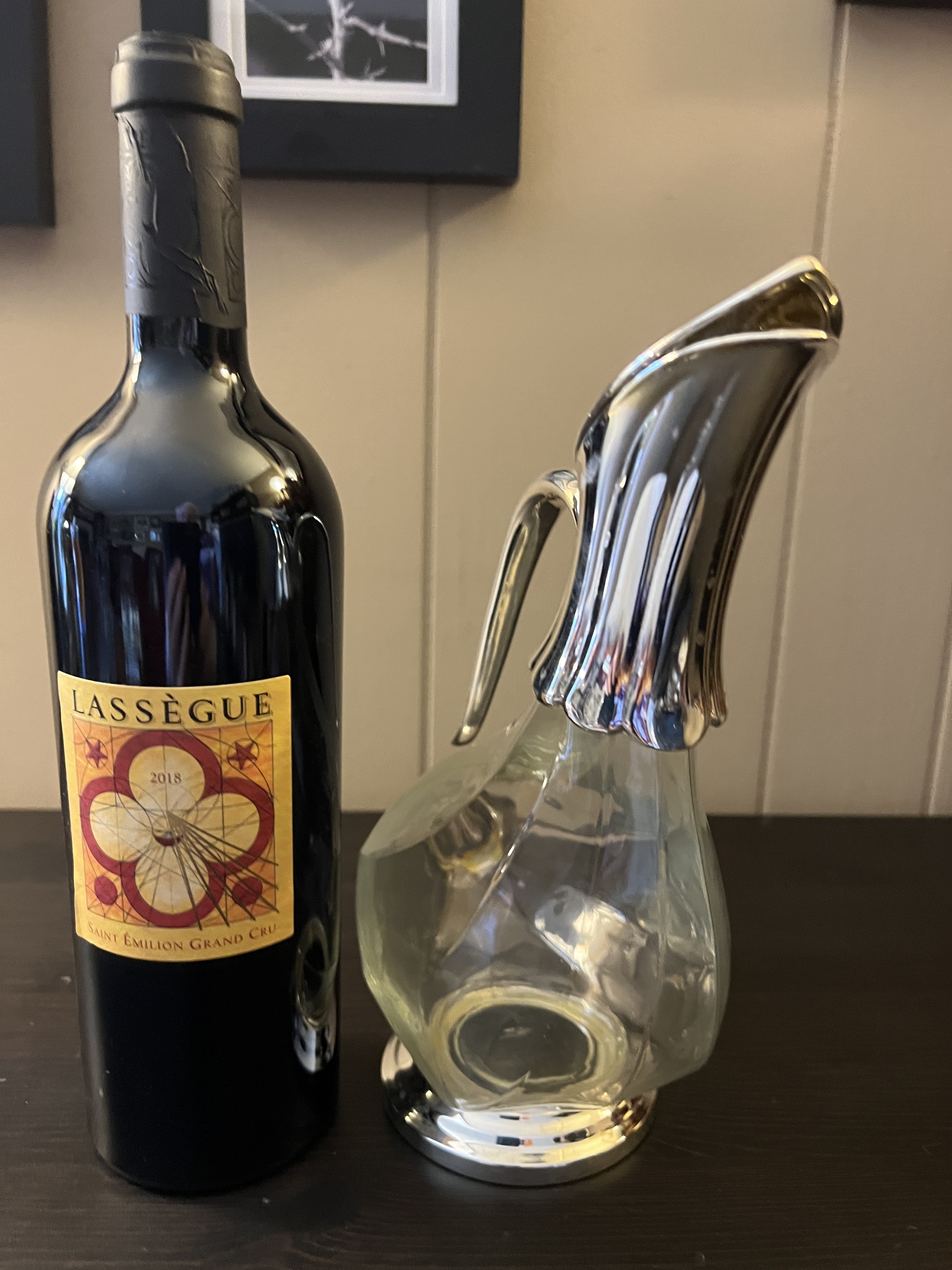 Because these were very young wines, two of them 2020, one 2019, and the one 2018, I opened them at 9:30 AM and let them breathe in my wine fridge. At 2:30 PM I double decanted them with aeration to help them open up. They were served at 3:00 and were at 60° F. The white Graves was served at 50° and was opened for an hour before serving.