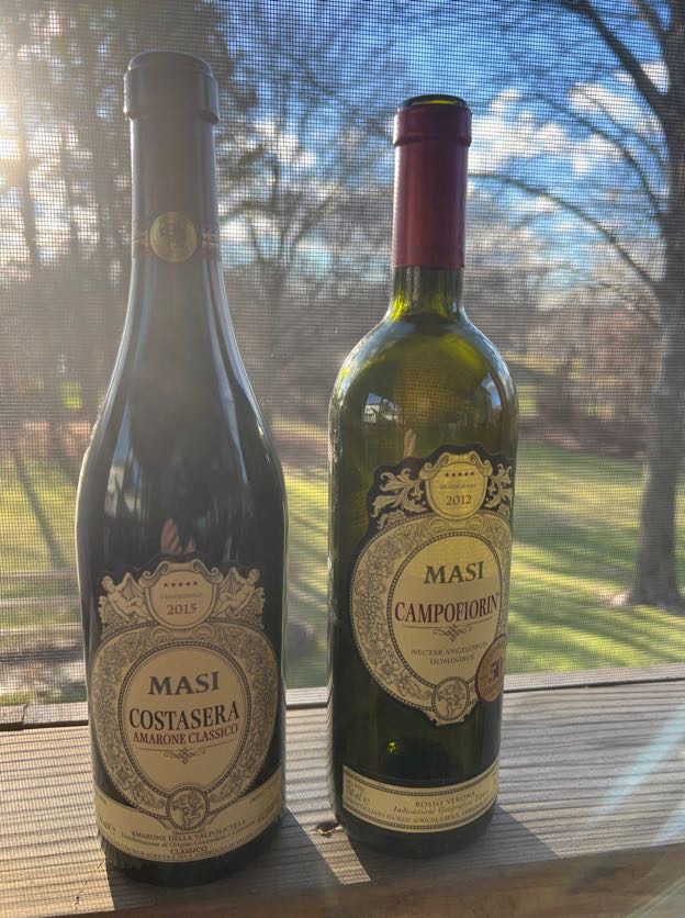 The short version of my recommendations is the picture above. My favorite Amarone is Masi Costasera Amarone Classico for around $60, and my favorite Ripasso is its younger brother, Masi Campofiorin for $18-19. Yes, the bottle of Campofiorin is empty. We enjoyed the last bottle in the cellar with dinner last night and that prompted me to write this blog post today.