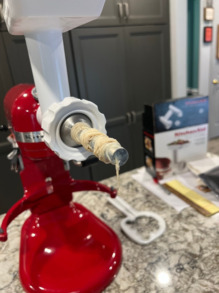 One of the best kitchen investments we made when we got married was a Kitchen Aid Stand mixer. I got one for Beth when we were first married and, when I started making bread and then homemade pasta, I was using it as much or more then she was. Our first one gave us over 35 years of great service, and after a minor repair it was moved to our youngest daughter’s home where it is still doing great work. Its replacement is still going strong after 16 years on the job. The Food Grinder Attachment that is available for this mixer is a good one and can be used for a variety of purposes. I used the fine grinding plate and got everything done in one pass.
