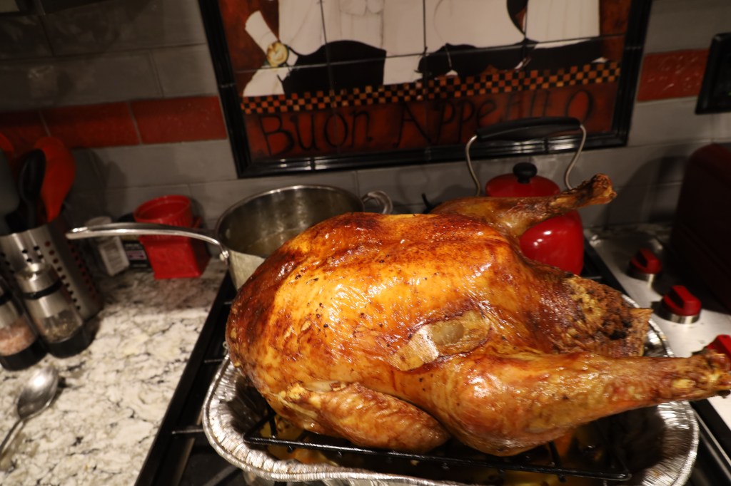 Use a thermometer – Any recipe that gives you a cooking time based on the weight of the bird should be viewed only as guideline on when the bird might be properly cooked. You need to cook the turkey to an internal temperature of 165-170° and make sure both the breast meat and the thigh meat are at that temperature. Most often the thigh is the last to get to the needed temperature. If your turkey came with a pop-up thermometer, that is a pretty good indication of when the breast is done but using an instant read digital thermometer to check both the breast and thigh temperatures is highly recommended, especially the thigh temperature. I start checking that when I remove the cheesecloth and do not take the bird out of the oven until the thigh is at that temperature. Any lower temperature than that carries a risk of infection. If I get both breast and thigh at 170° and the little probe in the bird has not popped, I still take it out to rest. Butterball says not using a thermometer is the second biggest cause of problems they get calls on, after not fully defrosting the bird.