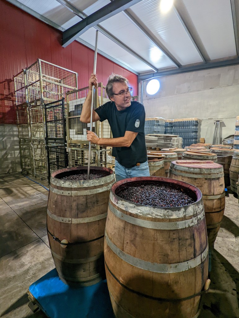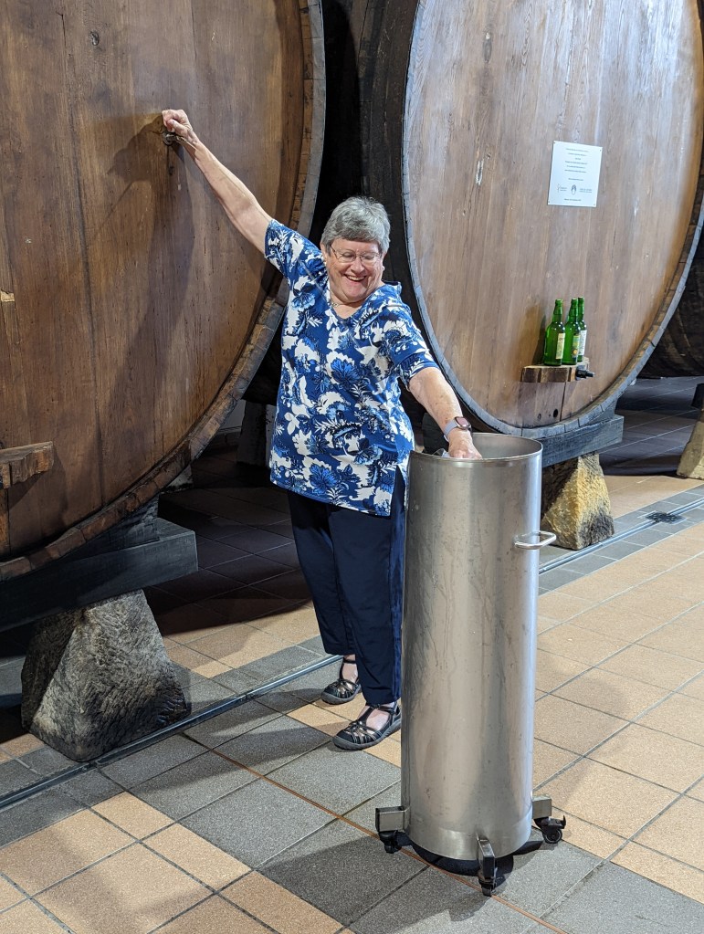Beth and I have been on many vineyard tours in the US and all the major wine producing countries in Europe. Several times we were there when the grapes were ripe and ready for harvest and had a chance to taste the grapes off the vines and then taste wines made from those same vines in earlier years. We found that tasting first the grapes and then the wine really helped us understand what the winemaker’s goal was with those grapes. A few times our guide helped us find very old vines and very young vines and taste the difference in grapes from the old vines. We had a chance to do all of that here but we have never had the chance to be in the middle of the wine production process and able to see, smell, and taste the voyage of the grape from the vine to the bottle. At seven of the other wineries that we visited we were given similar opportunities to get hands on during their production process and see some of the things that their winemaker did to put his stamp on the wine. Everyone had some unique elements.