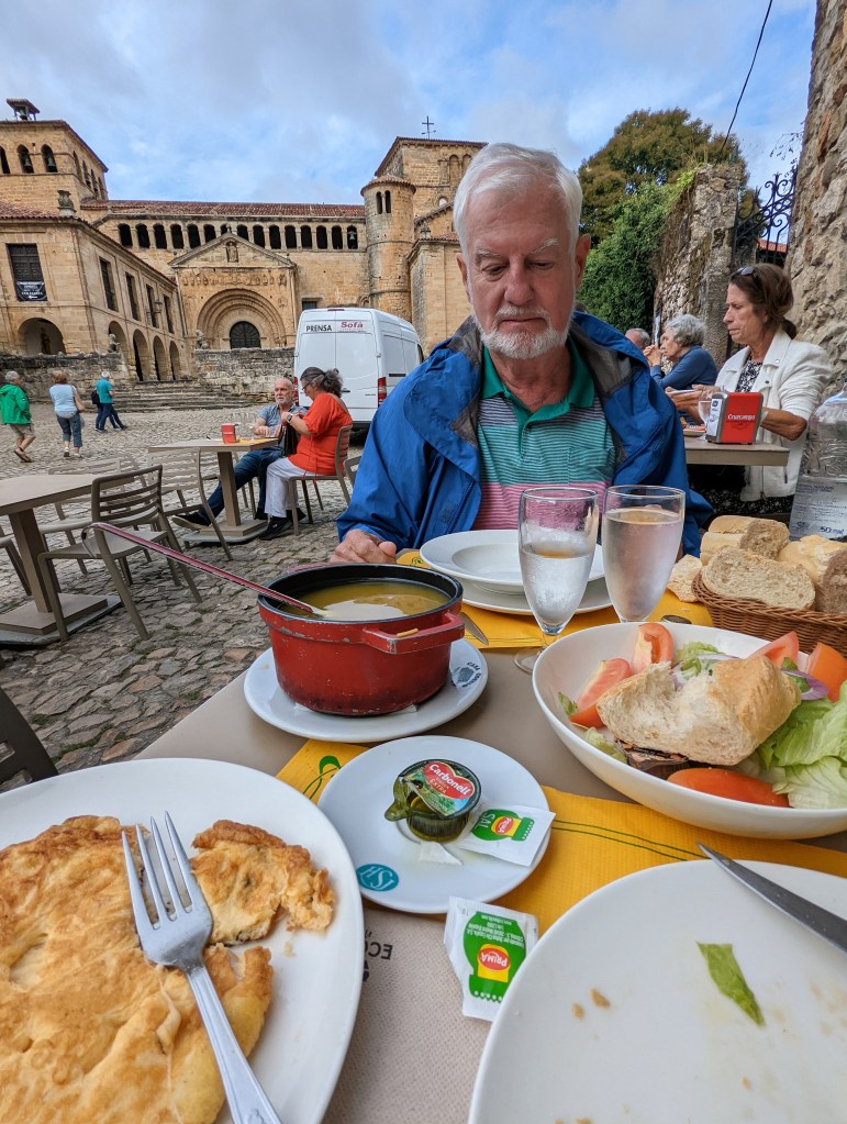 Howard had a bus meeting us at the airport in Santiago and taking us to our hotel which is about a mile outside the walled town for our one night stay there. We had the afternoon free, so Beth and I walked to Santiago, had lunch at a nice Italian restaurant, L. Incontro Santiago, and explored the Cathedral which is the burial site for St. James the Apostle.