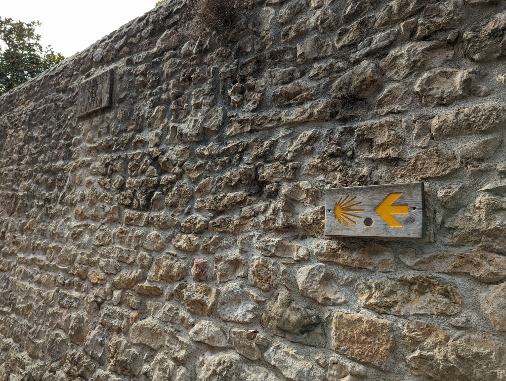 Here on the all is one of the signs pointing the way for pilgrims on the Camino Real. There is no one pathway to Santiago De Compostela. Pilgrims take hundreds of different routes through small towns like Santillana del Mar and/or down dirt roads past vineyards like the picture is the post for the prior day shows.